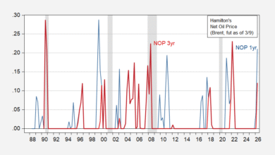 In firms tracked by the NFIB, employment is down (per firm), although there’s enough seasonal variation, it’s hard for me to see what’s going on trendwise.