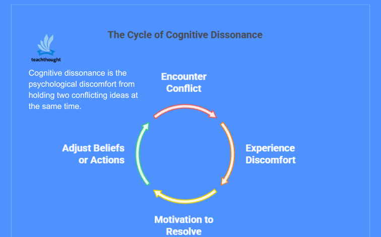 Cognitive dissonance is a psychological phenomenon that occurs when beliefs, values, or actions contradict one another, creating a sense of mental discomfort. While this tension can be unsettling, it is also often ’causes’ or promotes reflection, change, and critical thinking. For educators, understanding cognitive dissonance offers an opportunity to create a learning environment where students feel challenged but supported as they confront inconsistencies in their thoughts and behaviors.