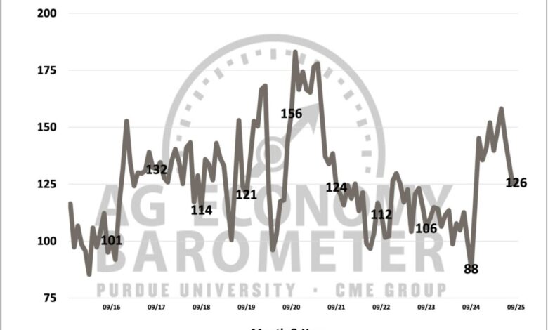 The Administration is mulling a $10-14 billion bailout package for ag producers, with emphasis on soybean farmers (deja vu!). Farmer sentiment is pretty low relative to the exuberance note in the aftermath of Trump’s election, as this Purdue/CME survey released today shows:
