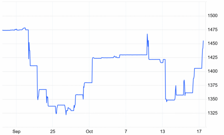 Data as of noon (CT) 17 Oct 2025.Up is a depreciation.