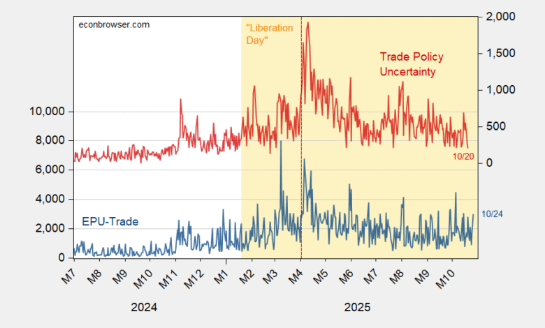 To me, it will be interesting to see (1) how much measured policy uncertainty rises, and (2) whether anybody believes in the durability of Trump’s latest trade threat.