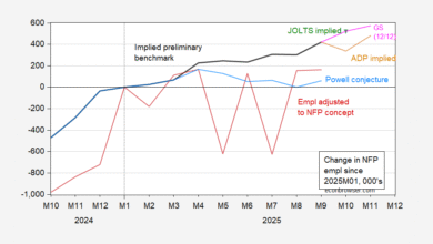 One positive piece of news is that the CPS employment series adjusted to the NFP concept rose markedly, potentially marking a break from the downward trend recently observed. That being said, the standard errors associated with the CPS estimates are likely larger than usual, due to the missing data for October.