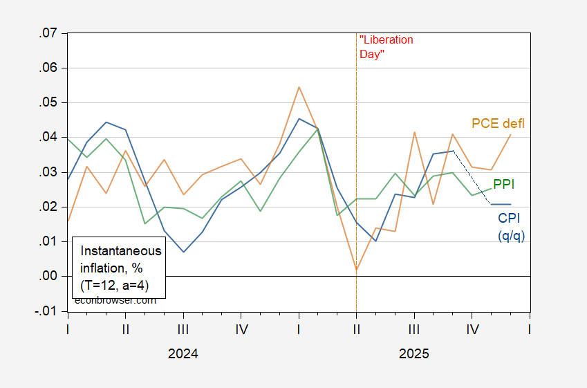 I plot q/q for CPI because the missing October value prevents calculation of instantaneous CPI for the most recent observations. On the other hand, q/q inflation approximates ok for instantaneous for the CPI.
