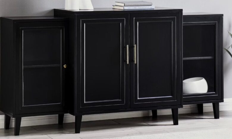 Walker Edison Parker Four-Door Tiered Sideboard in Black