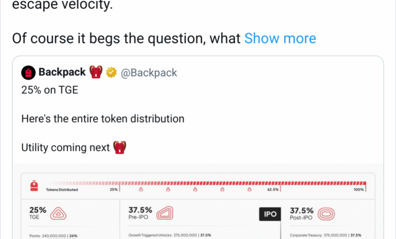 Backpack posted to X on Monday that its token launch will begin with 25% of the intended supply, or 250 million tokens, to become available on a yet-to-be-disclosed launch date.