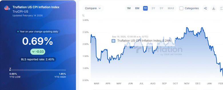 According to Truflation, today: The current Cleveland CPI inflation nowcast for February is 2.38%. Source link