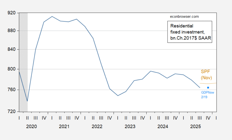 GDPNow has residential investment as flat in Q4, and below the November SPF trajectory.