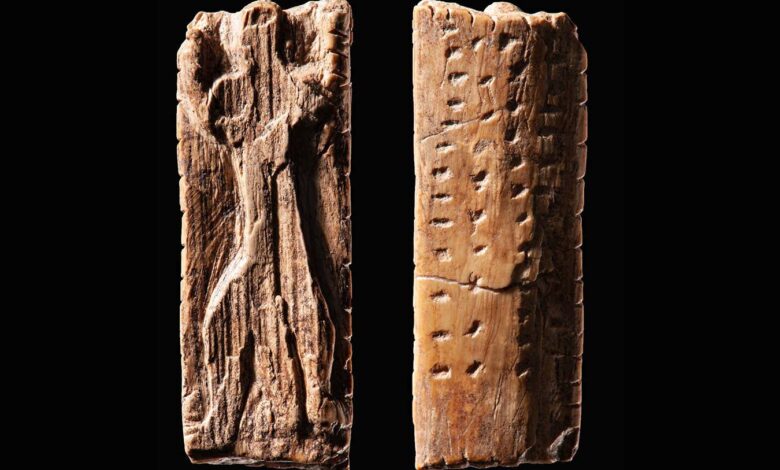 The mammoth figurine from Vogelherd Cave, approximately 40,000 years old, bears multiple sequences of crosses and dots on its surface. Credit Credit: Universit?t T?bingen / Hildegard Jensen, CC-BY-SA 4.0