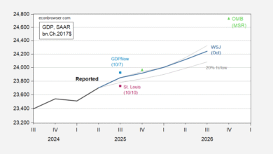 Out today: Figure 1: GDP (bold black), WSJ mean (blue), WSJ +/- 20% bounds (gray), GDPNow of…