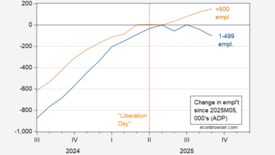 My nowcast of BLS private nonfarm payroll employment was for a decreaes of 78K, but with a…